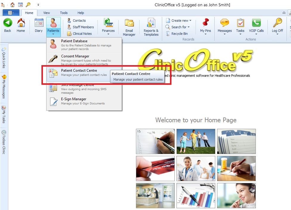 * Open the Contact Centre (located at the top under the patients button as a drop-down)