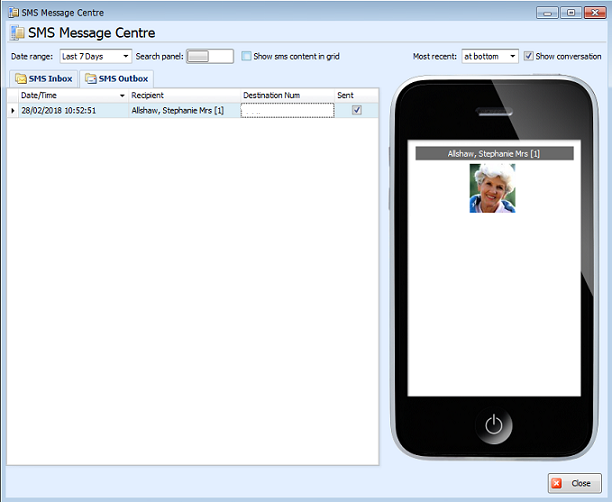 There is also a new SMS centre feature that allows you to view messages in real time, along with conversation strings and to receive replies. This can be seen below: