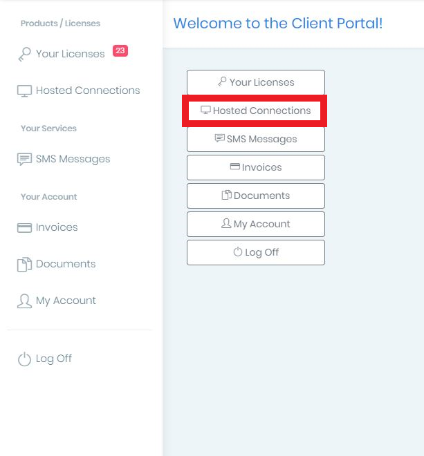 Once you have logged on, select ‘Hosted Connections’ from the list of options.